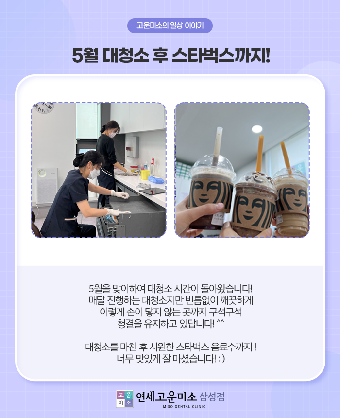 고운미소의 일상 삼성연세고운미소치과 5월 대청소 후 스타벅스까지! 작성자 고운미소-삼성 작성일 2023-05-25 11:30 조회 16336 좋아요 0 싫어요 0 인쇄 « 삼성점 전 직원 딥클렌징&와타나베 전문가 잇솔질 연습 김창환님 감사합니다! » 목록보기