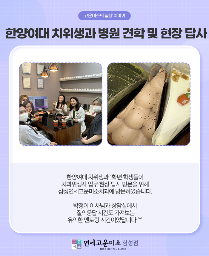 고운미소의 일상 한양여대 치위생과 병원 견학 및 현장 답사 작성자 고운미소-삼성 작성일 2023-05-22 11:31 조회 17334 좋아요 0 싫어요 0 인쇄 « 전지수님 감사합니다! 삼성점 전 직원 딥클렌징&와타나베 전문가 잇솔질 연습 » 목록보기